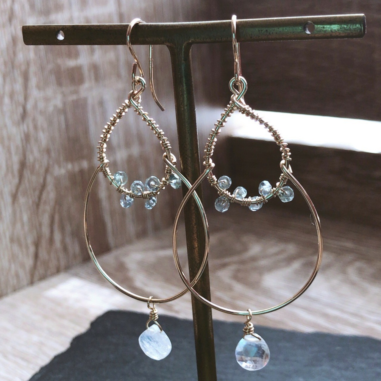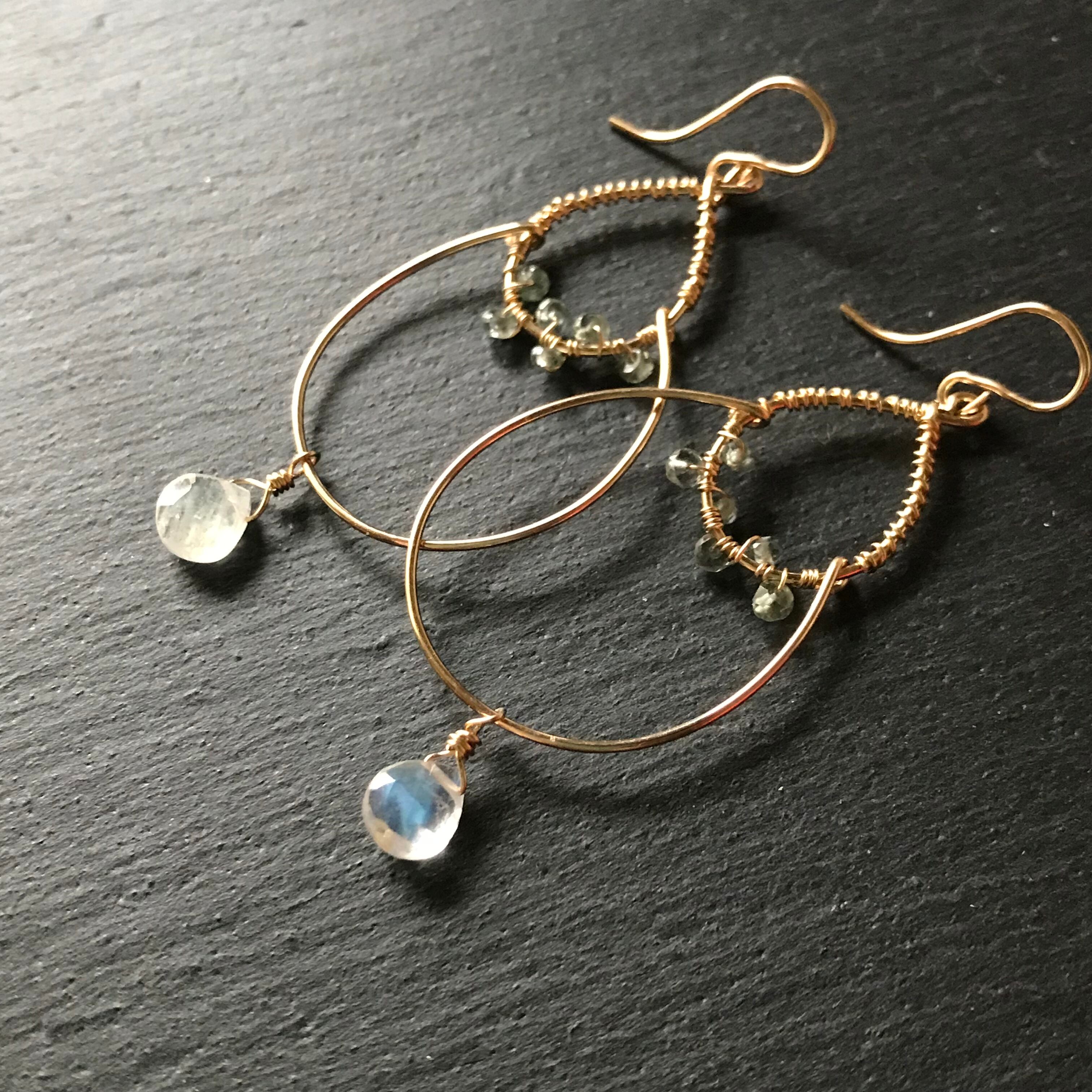 14kgf/lainbowmoonstone×greensapphire Pierce