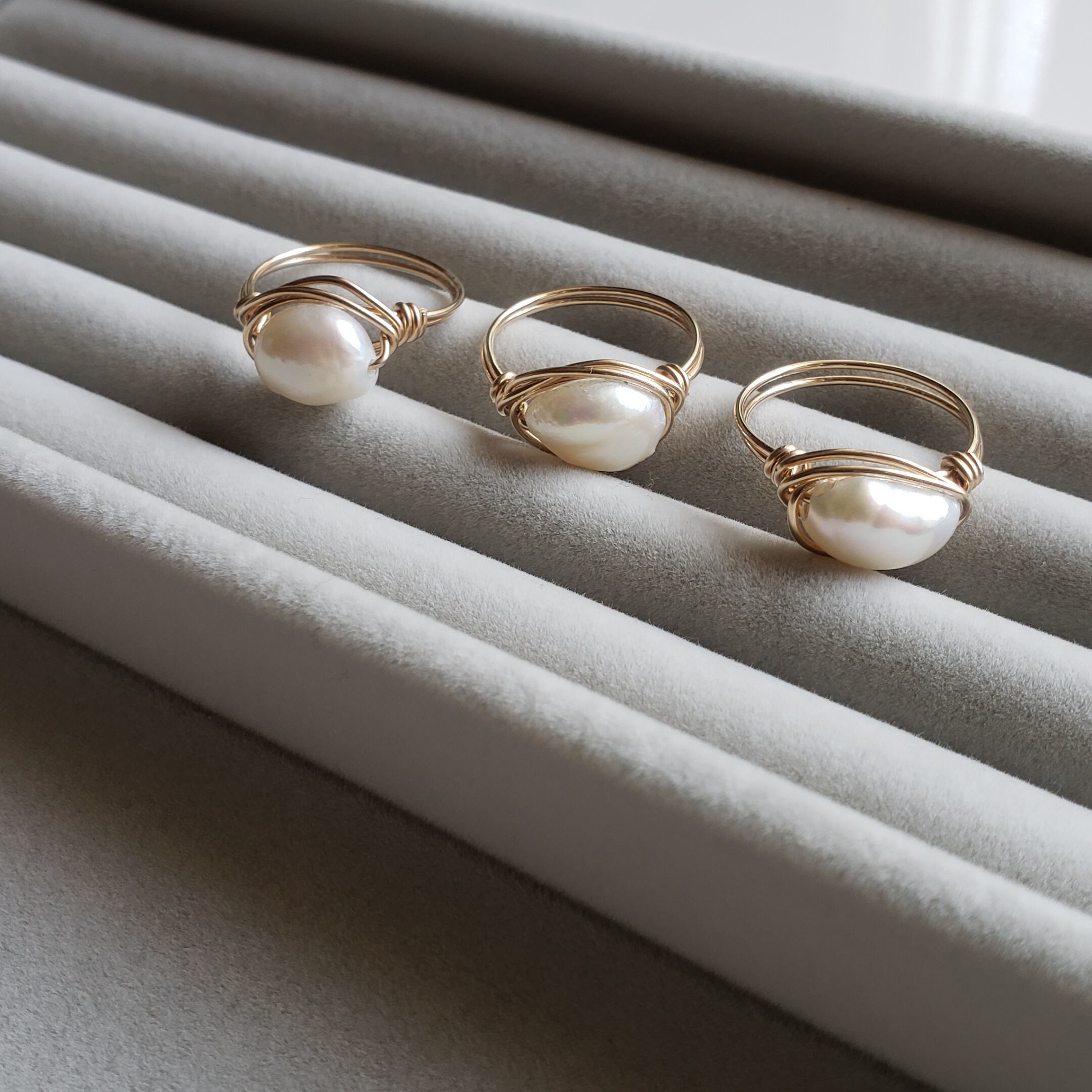 バロックパールでお仕立てしました淡水パールリングです。
