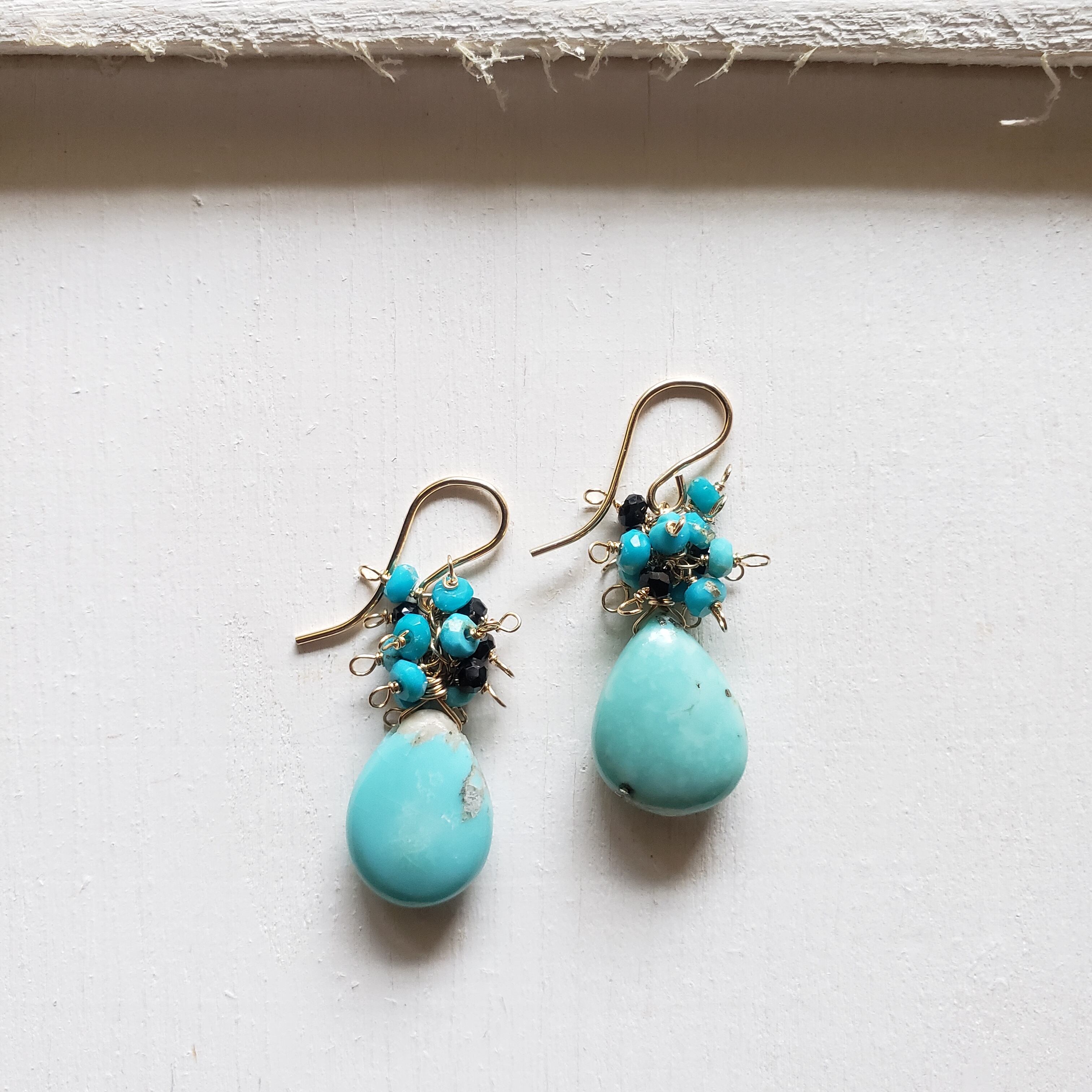 海と空を思わせる色、アリゾナ産スリーピングビューティーターコイズとブラックスピネルでお仕立てしました。