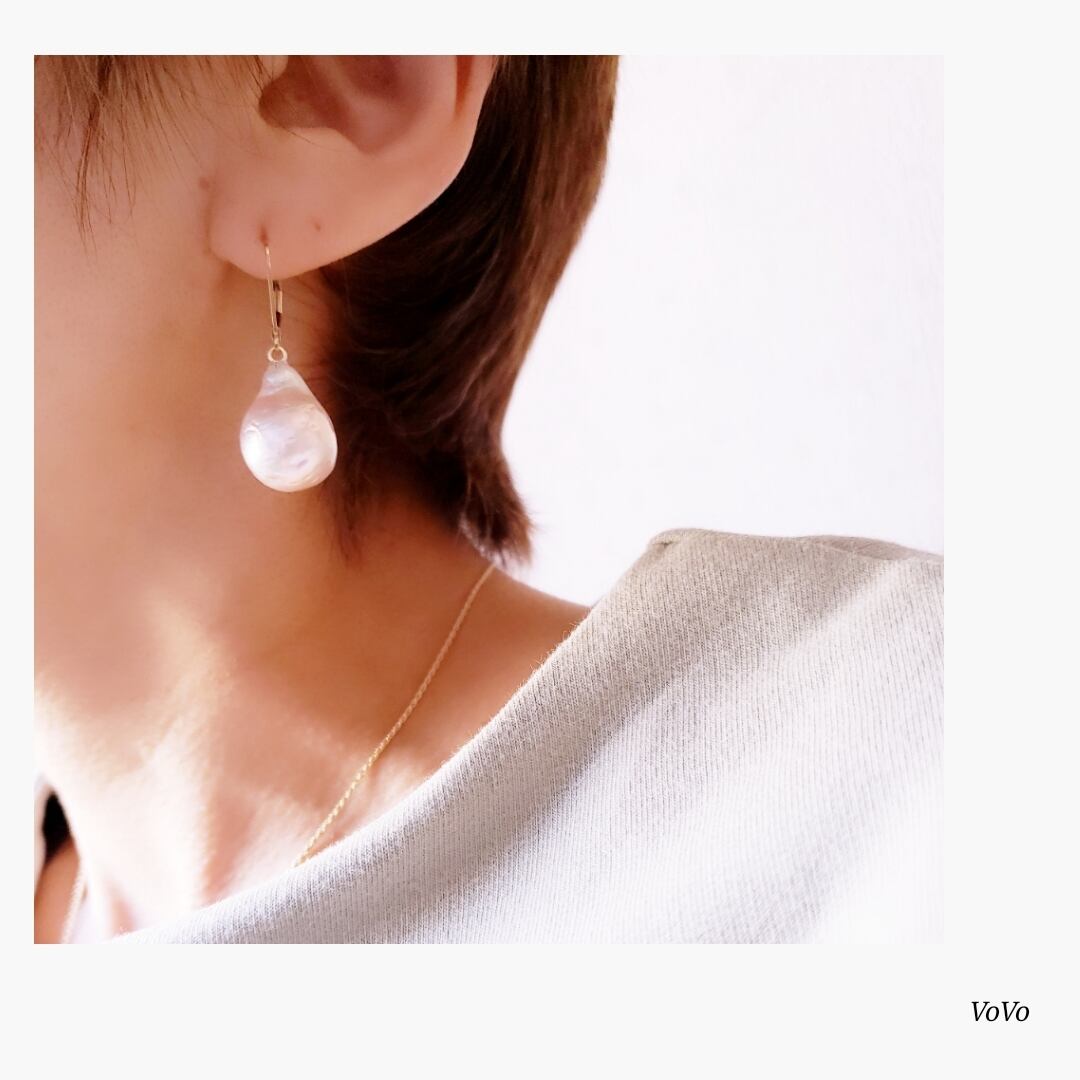 1粒で存在感のあるパールは、着けてて安心なフレンチフックでシンプルにお仕立てしました。